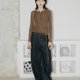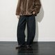 选用古铜色的 YKK 拉链,后腰手工订的棕色皮牌,裤子面上棕色明线,整体复古休闲又日常;两侧口袋做的更大更低,便于双手轻松放入,前片分割线更丰富了裤子设计感。