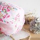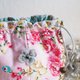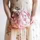 Uses a floral fabric based on an elegant pink color. Embroidered petals are sewn around, and the closing mouth is also decorated with flower embroidery lace. The appearance and contents are gorgeous.