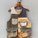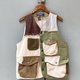 用不同颜色的牛仔布制成4袋hunting vest, 每件拼色不同,保证独一无二。 男女均适合