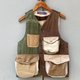 用不同颜色的牛仔布制成4袋hunting vest, 每件拼色不同,保证独一无二。