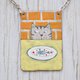 Fish and Cat, Fish Dinner, Cat Necklace, Enamel Necklace, White Cat, Restaurant