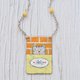 This necklace is cut by hand with a shear and handpainted with a vitreous enamel, finalizing with an Italian technique referred to as Sgraffito ( Italian definition means "to scratch" ). Both side of the shape is enamelled, the back side is covered with black. Absolutely handmade unit.