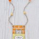 Enamel necklace, based on copper. Unique piece, with a particular design and graphics. This is a nice jewelry. The graphic was inspired by home and cat. The graphic was painted with vitreous enamel and used sgraffito technics (scratch work)
