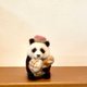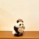 - 这是一只抱着羊毛毡做成的面包的熊猫。