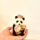 这是一只抱着羊毛毡做成的面包的熊猫。