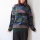 冬复古中性日本制几何针织墨绿紫色羊毛古着毛衣-K248