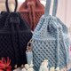 挺身百变的水桶袋,图案是钻石菱形,这个图案可以做到好挺身,摆几多嘢都唔容易变形🥹,手挽带可拆卸,扣入边感觉高贵~扣出边即刻活泼晒~另备有可拆、可调节的斜孭带,摇身一变可做斜孭袋~😍