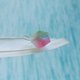 ▸ 淡淡的透明色调,草绿色和粉红色渐层交错,中间点缀少许水蓝色粉,底下有闪烁银白亮粉,以白色打底