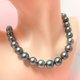 纱织小姐甄选出36颗直径为1.0-13.0mm大溪地黑珍珠,按照秩序穿制成拉直长度约45cm的串链,形成泛着铂金灰色光芒的奢华款大溪地黑珍珠项链,净重高达70.8克。大溪地黑珍珠硕大浑圆,皮光细腻,主色为铂金灰色,伴色含有孔雀绿、孔雀蓝、铂金灰、神秘紫、彩虹色等多种炫彩色调,稀有而神秘,让人感叹自然的力量和天地的光芒,纱织小姐为其配置简约的S925银元宝扣,为你增加端庄贵气的同时也毫不犹豫的给予你舒适感。虽然每颗珍珠都不可避免的有软凹微瑕,但瑕不掩瑜,且社交距离不可见,可以搭配你的一切职业装和休闲装,表达理性与神秘,呈现稀缺和端庄。