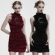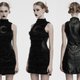 Stand up collar and sleeveless design, with different fabrics to create a new Chinese Gothic aesthetic.