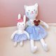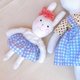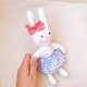 The little rabbit named Milly comes with a dress, shirt and skirt. Replaceable, dig Able to order more set, size 7x25 cm, thick calico material, natural color Stuffed with good quality polyester fiber, then soft and fluffy, with extra accessory as a flower bow tied at the ears.
