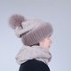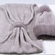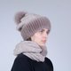 女士针织貂毛绒帽与围巾套组,搭配北极狐毛球