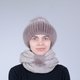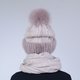 套组包含:附北极狐毛球的针织貂毛绒帽 + 附毛绒扣的同款围巾