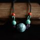 搭配两颗小的绿松石,搭配南红玛瑙圆珠,珠子之间用手工绕线连接,手工编织线绳,搭配黑檀蝴蝶背云,手工流苏。项链整体颜色清新,质感强烈,流苏背云的使用让项链整体更为丰富完整!
