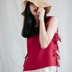Designed for everyday wear, with an open side, tied with an attached tie belt, this sleeveless top is made from Linen. A straight fit, it has a round neckline.