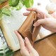 - Mini wallet / Light brown color / Short wallet / Cow leather