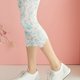 - Cute capri with scallop hem and flowery cutout. Made of quick-dry, UV protection, body-sculpting fabric.