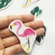 缤纷的粉红火烈鸟红鹤和热带雨林阔叶 贴在哪里都会好渡假! 透明贴纸可以贴手帐本本, 收纳盒, 玻璃杯, 明亮的瓷砖, 贴窗户或是笔电!立刻把所有东西变可爱 当然还可以贴卡片或是包装礼物! 纯手工剪的透明贴纸 每张会有些微不同 防水亮面 尺寸: 红鹤约4.5x3cm 叶子约3x2cm 产地/制造方式 台湾制造