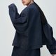 【正肩】法式簡約/薄款无领牛仔外套 - 女装西装外套/风衣 - 棉.麻 蓝色