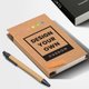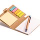笔记本、便签纸和原子笔,属于办公学习必不可少的三件套了,KUSDOM此款多功能环保便条本,将三样物品合而为一,可随时做文字记录或是使用彩色便签条留言,携带使用更方便;牛皮纸封面,绿色环保,配一支黑色环保原子笔,1.0黑油墨。便条本封面可定制单色LOGO或图标等,适用于办公、展会宣传、广告促销、商务馈赠等多种场合。