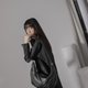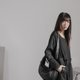 supportingrole 率性金属真皮斜肩背包侧背包 黑