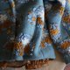 美妙的雾蓝色底色上,立体的白黄蓝花朵,