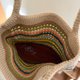 制作时,增加包包的厚实度,保持编织的垂坠感之外,也兼具实用性。在搭配颜色上有趣的排列组合,是出门穿搭的好配件。