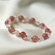 <**草莓晶**> 主爱情与人际关系,有助于提升爱情运势,又能让思考变得更清晰及令心境平和安详。佩戴**草莓晶**可使人陶醉于爱的怀内,带领人在互相尊敬的情况下享受每刻。**草莓晶**可以开发心轮,当你注入爱的信息在水晶中时,别人就能感受到你的爱的存在。