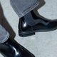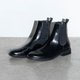 异形橡筋切尔西靴以舒适硬挺的黑色亮面牛皮