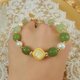 由贝壳金属配件+渐变和田玉+珍珠设计而成