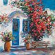 一幅梦幻的希腊风景:传统庭院,有着粉刷成雪白的建筑,点缀着鲜艳的九重葛和各式各样的花盆。希腊一直是我源源不绝的创作灵感来源——我希望能与您分享!