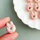 兔子形状的甜甜圈上覆盖着大量草莓巧克力。