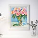 **玫瑰画,花卉艺术,粉红玫瑰油画,原创艺术。**