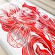然后,我小心地将一张凸纹纸放在涂有墨水的油毡块的顶部,并用汤匙用手按压它。这样,凸起区域的墨水就会转移到纸张上,形成最终的印刷品。每张油毡版画都是原创艺术品,而不是数位复制图像。所有油毡艺术品都带有我作为艺术家的个人签名。