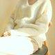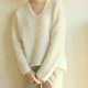 Cocoon-fit wool sweater with V-neck design front and back. Pulls-on. Please note that this sweater is prone to shedding, avoid wearing it with fabrics that retains fur/hair.