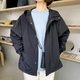 一款采用防泼水防风材质制成的男女同款连帽外套。