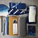 福袋中,可能包含蓝染暖帘、纯羊毛围巾、蜡染图案杯垫、植物染编织的项链手链、三角手拎包袱、图案方巾、蓝染团扇等。