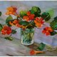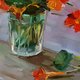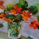 - 花卉画总是一种有趣的家居装饰。旱金莲是一种非常优雅的花朵,明亮、精致又简约。在花瓶中,它们看起来很不寻常,让人联想到复杂而欢快的旋律。这幅画积极而明亮。
