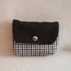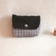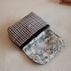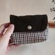布棉花双层有底零钱包 深咖啡色帆布+红格子英伦风棉麻花布