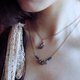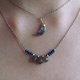 An enchanting two-layer necklace inspired by the mysteries of the mystical. This beauty features an opalescent Labradorite gemstone shaped in a crescent moon, faceted Labradorite drops, and faceted chrome blue Hematite rondelles. Complete with 14 Karat gold plated chains and findings.