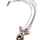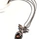- 构图画面: 咖啡色的水晶玻璃被枝叶围绕, 好像果实一样, 蜻蜓正在带它回家. 用两条幼幼的项链系着, 用以增加蜻蜓飞翔时的流动感.