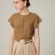 降落伞编织技法做连袖设计,修饰手臂与肩部线条,并以短版衣长结合下摆缩口设计,展现俏皮感,可做小外套或单穿两穿式搭配。