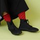 以传统的市松图案为灵感,采用蓬松立体的浮织编法呈现的足袋袜。