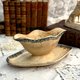这款美丽的19 世纪末酱汁船/酱料盅来自法国,带有 Moulins des Loups & Hamage 印记,迷人蓝色花纹 围绕波浪形边缘,陶器表面泛着自然的古色泽与岁月痕迹,呈现历史感。这样的酱料盅当年用于盛装肉汁、酱料,如今不仅可作为实用餐具,也能作为花器与独特的古董收藏品。