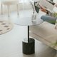 此款边桌将黑色雾面粉体烤漆结合亮面大理石,