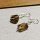 天然高品质,浓郁黄水晶,随型刻角宝石珠纯银耳环