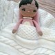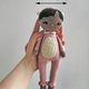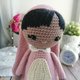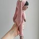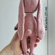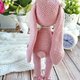 Knitted girl in pajamas in the shape of a rabbit is crocheted of smooth hypoallergenic semi-cotton yarn. The toy can be a gift for a baby shower, for the baby's first birthday.