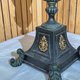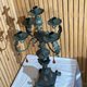 古典欧式五头烛台 锻铁 金箔羽毛 水晶珠 金箔 柱式 上半部锻铁金属 ,下半部复合材料 ,整体很沈,青古铜色 局部金色金箔搭配褐色垂珠,这是造型典雅 气氛 $4850 尺寸24*24*54