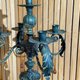 上半部锻铁金属 ,下半部复合材料 ,整体很沈,青古铜色 局部金色金箔搭配褐色垂珠,这是造型典雅 气氛 $4850 尺寸24*24*54