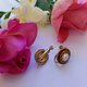 这对50年代仿维多利亚时代风格 螺丝夹式珍珠耳环金色饱满华丽,金工看起来是手工制造质感,淡水珍珠的部分也很特别,是整颗珍珠剖面镶嵌在两边,因此从耳环背面可以看到珍珠切割开来的样子,这样的镶嵌方式也是比较老式跟早期的指标。透过转动螺丝调整耳环配戴松紧度,此构造流行于1920-1950的耳环设计,直到后来才被其他夹式构造所取代。